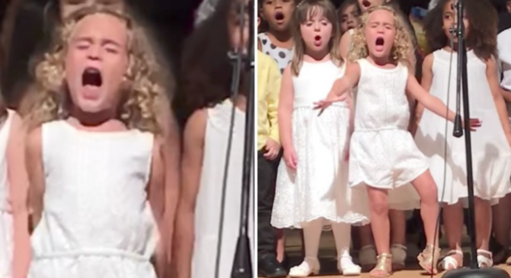 Children’s singing styles vary greatly. They don’t know how to hide their feelings. Sophia is a young and captivating performer. Instead of simply opening her lips and producing nonsensical sounds, she commits herself to the task with all her emotions. The future artist’s mother filmed the event to record her daughter’s brilliant and emotive performance. The youngsters on the left and right sing, raising their lips slightly, but Sophia stands out from the throng with her outspoken, unforgettable performance on stage.
