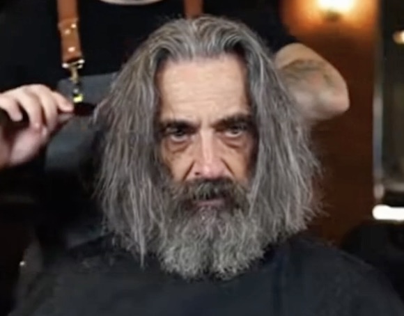 The stylist got to work, carefully trimming and shaping his hair, removing years of length while keeping just enough to maintain character. Layers were added to give movement, and the ends were freshly cleaned up, instantly refreshing his look. The difference was noticeable even halfway through—the long, grey strands that once framed his face were now replaced with a clean, styled cut that brought attention to his eyes and jawline.