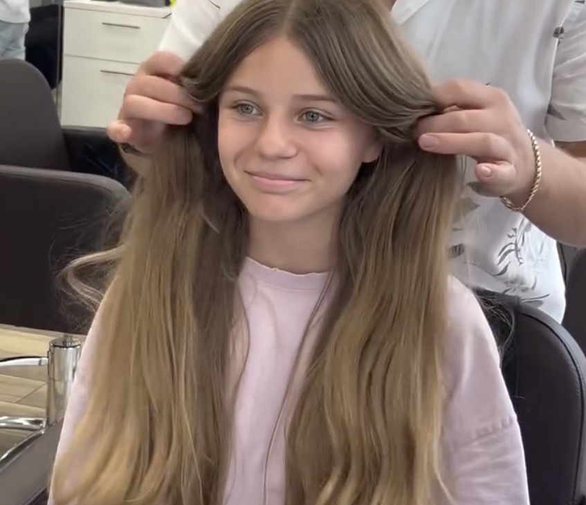 As the layers grew shorter, her entire appearance began to change. The softness of her face disappeared, replaced by a sharper, more mature look. By the time the cut was finished, the transformation was unbelievable.