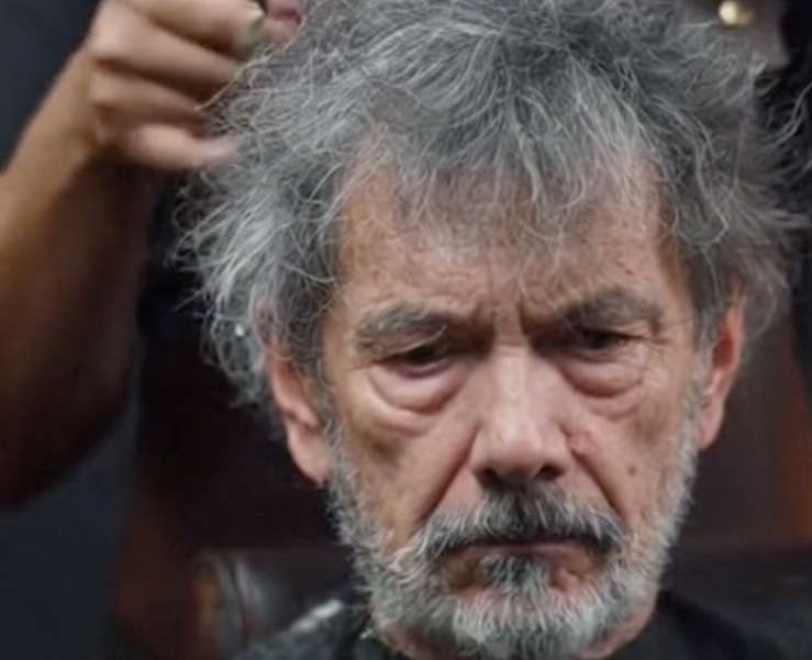 For years, the old man let his hair grow without paying much attention to it. It had turned a mix of white and grey, growing thick and uneven around his ears and collar.